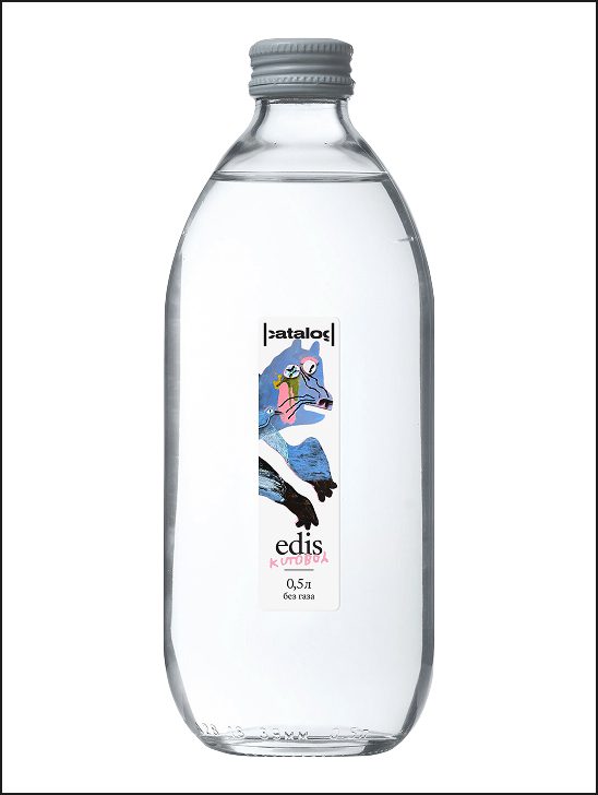 Первую лимитированную серию бутылок edis украшает работа Ильи Кутобоя Палм Принц». Его стиль, тропический примитивизм», вдохновлён путешествиями по Юго-Восточной Азии, а работы сочетают микс живописи, графики, обрывков фраз, слов и напоминают сны с нелинейным сюжетом.