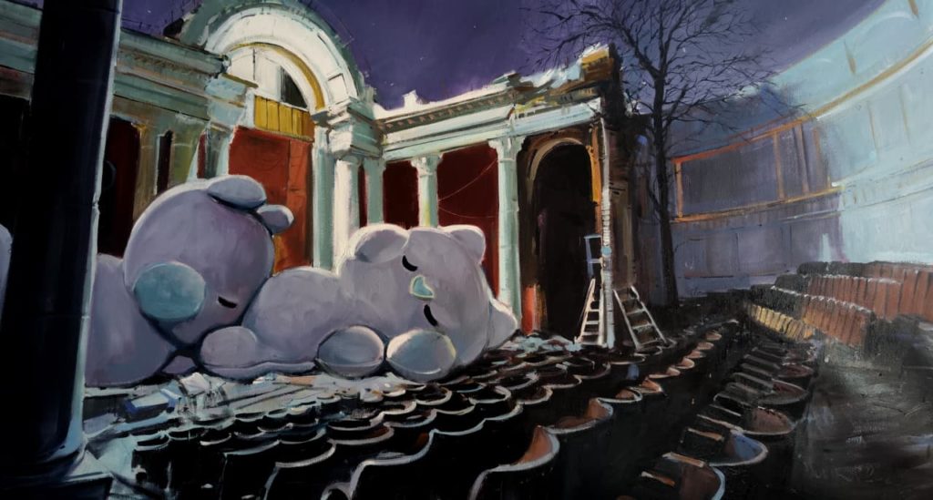 Об авторах: Братья близнецы Антон и Артём Матвеевы. Родились в 1987 году в Харькове. Образование: МГАХИ им. В. И. Сурикова на факультете графики (Мастерская плаката). Художественная школа им. И. Е. Репина в г.Харьков. «Все наши картины мы придумываем и пишем вместе. Благодаря тому, что мы левша и правша, мы удобно помещаемся за одним холстом, если он, конечно, не слишком маленький. В живописи мы часто обращаемся к нашему childhood. Всё, что составляло нашу тогдашнюю жизнь (компьютер, Лего, телевизор и первые западные каталоги мебели) в той или иной степени повлияло на наши работы. В наших холстах смешаны образы из снов, воспоминаний и увиденных фильмов. Часто используем метафоры в своей живописи, но не всегда любим давать расшифровку зрителю на них».