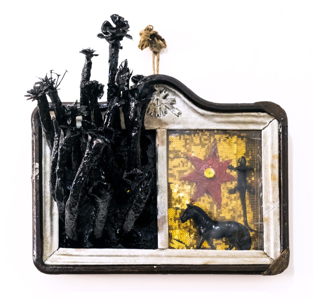 В других работах новой серии Вадим продолжает создание собственной реальности в попытке уйти от действительности. На основе старинных киотов, Вадим создает «реликварии» другого мира, где на месте одной из икон располагаются «космические регалии», а с места другой иконы вырывается новая жизнь альтернативного мира художника.