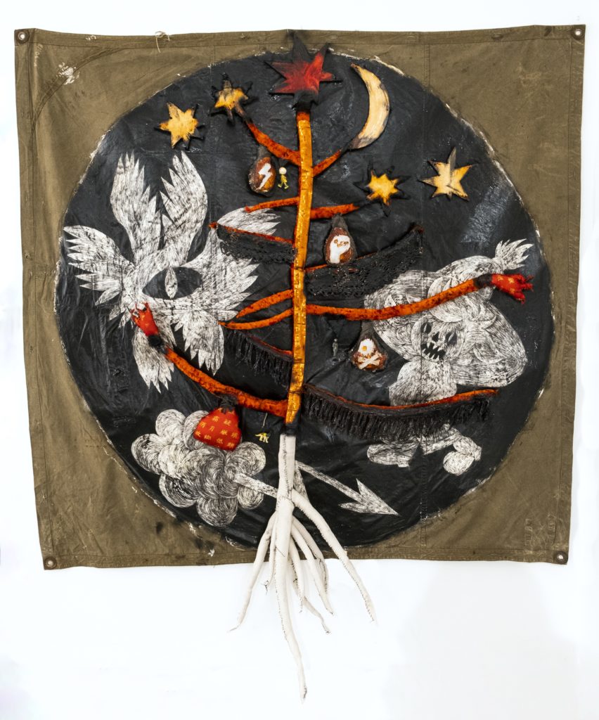 Новые работы, помимо темы памяти, затрагивает тему миграции как в глобальном смысле, так и в очень личном – в некоторых интервью Вадим рассказывает, что у него ни в одном городе нет ощущения дома и принадлежности к данному месту. Несмотря на название «Новый год» и «Новый год 2», от работ остается впечатление, что праздник никогда не состоится. Человеку свойственно обустраивать и делать уютным свое жилище, пусть и временное, особенно в праздники. Вадим помещает украшенную бусинами и игрушками новогоднюю ель на плащ-палатку, по сути, переносной дом, тем самым показывая, что даже традиционные символы праздника и уюта не могут заполнить пустоту, оставленную отсутствием постоянного места жительства.