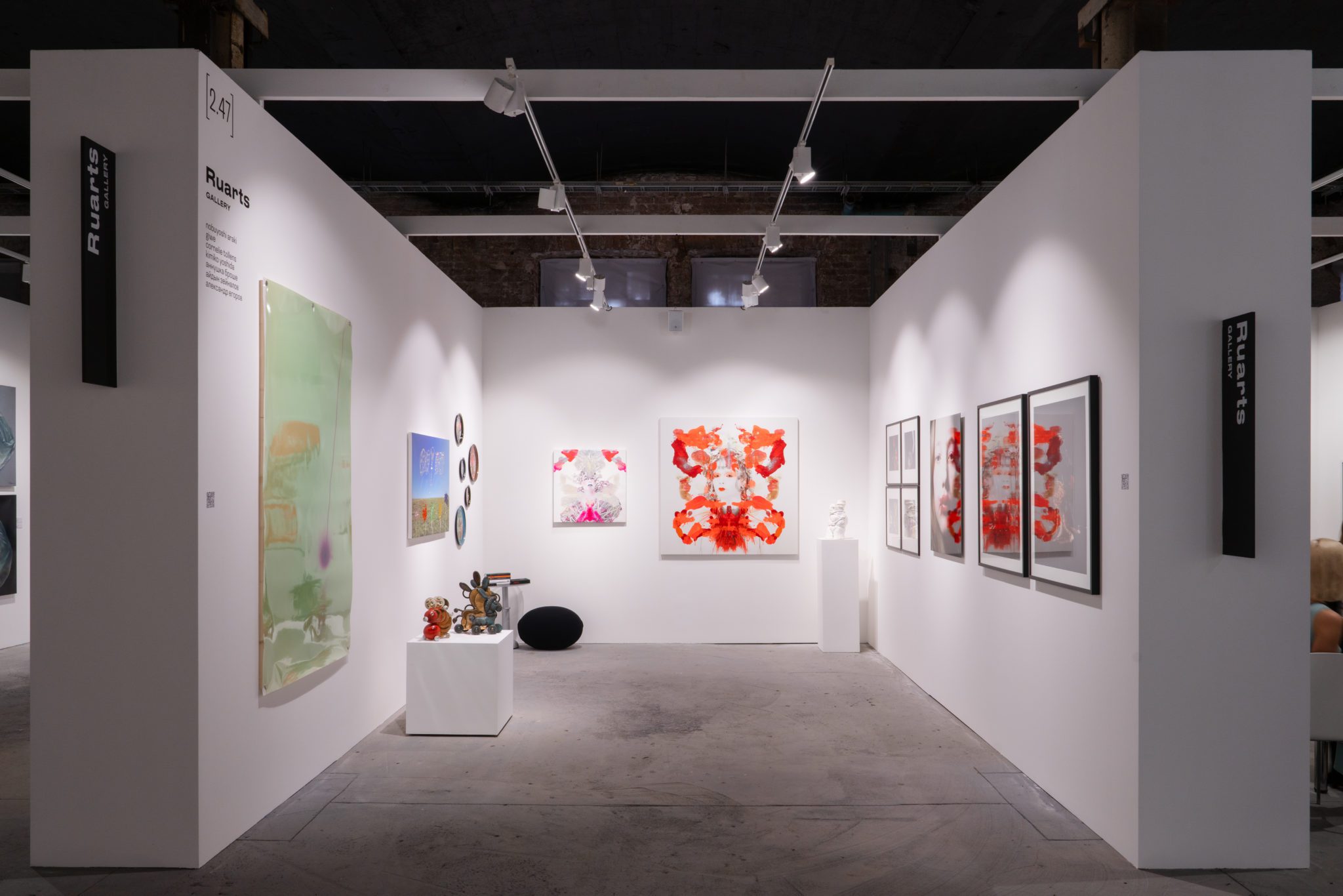 Галерея Ruarts представляет на своем стенде художников уличной волны, а также современных художников Алину и Джефа Блюмис. Назар Ишью и Кирилл Ашастин работают на стыке оптического и абстрактного искусства. Алексей Лука работает с архитектурной формой и фактурой материалов, создавая произведения в техниках коллажа и ассамбляжа и используя различные медиа, будь то живопись, графика, объекты, инсталляции и site-specific проекты.